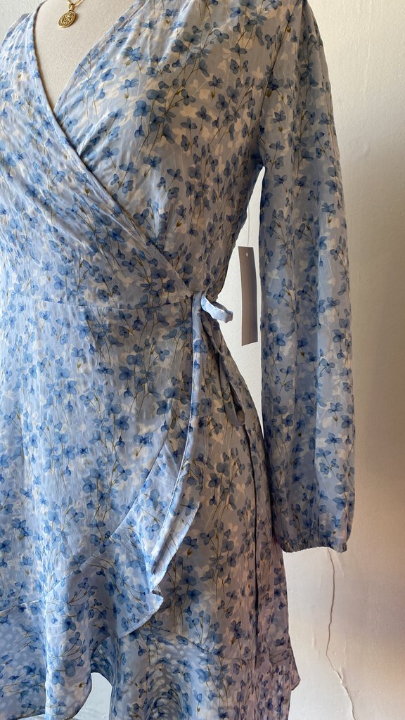 Add a feminine charm to your wardrobe with the Lisa mini wrap dress from Angel Eye. With long sleeves that add a touch of grace, this dress effortlessly combines sweetness and elegance. This dress is light weight with the mesh-like fabric and has elastic an elastic cuff on the sleeves. It would be perfect paired with some sandal heels for a mid-Spring or Summer wedding!