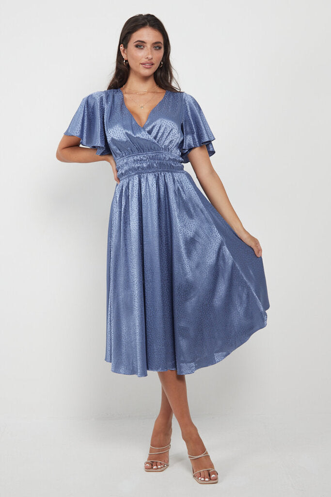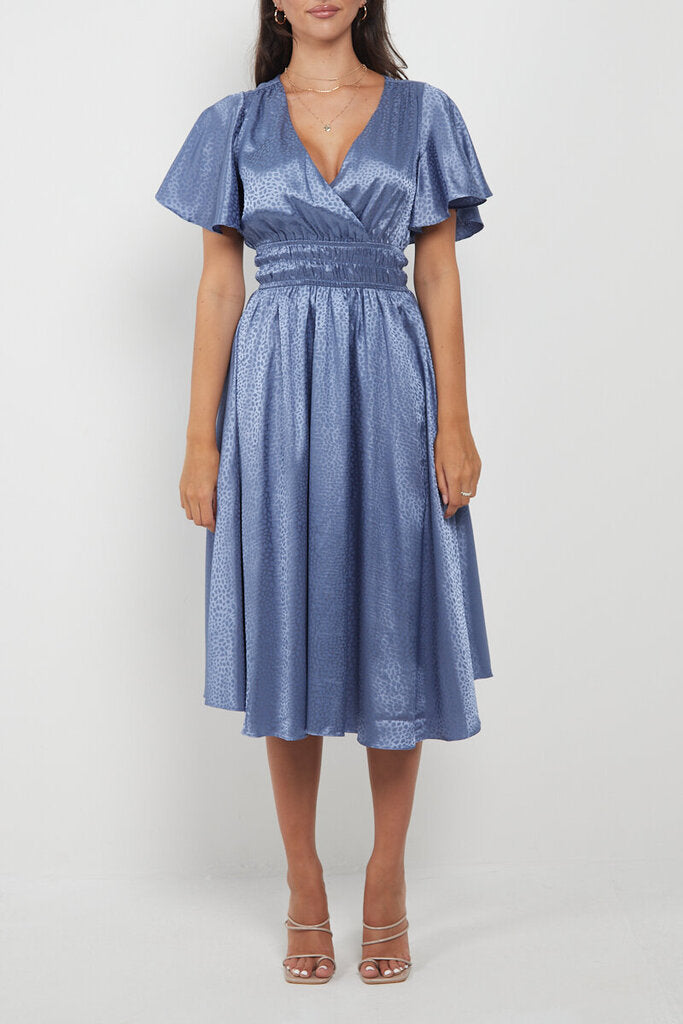 Angel Eye 'Tayla' Blue Leopard Midi Dress
