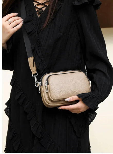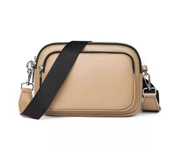3 zip pocket, great space to stay organized. Adjustable strap can be crossbody. Striking colours.