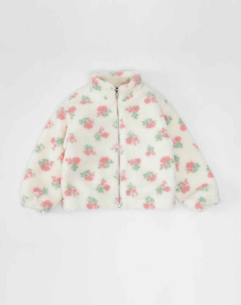 Brunette the Label Kids Floral Sherpa Jacket - White
