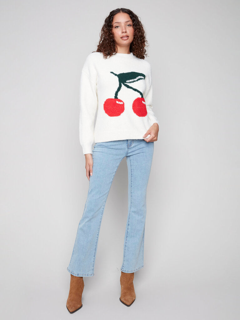 Charlie B Cherry Intarsia Fluffy Sweater - White