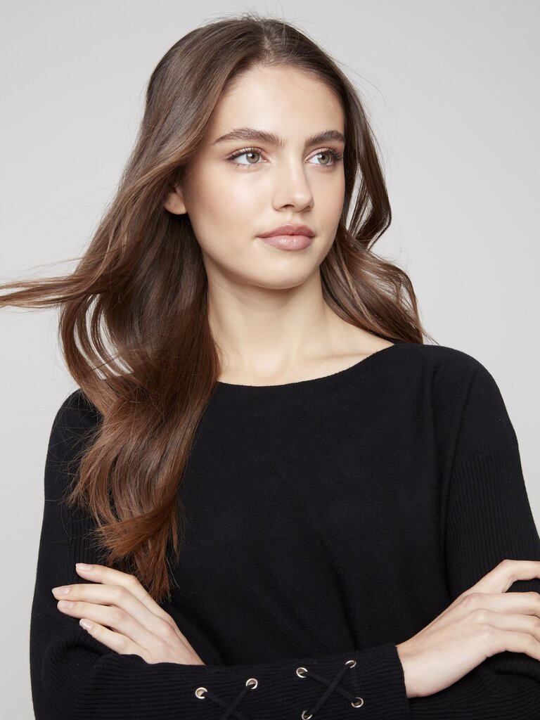 Go for this smooth and lightweight sweater to elevate your outfit with subtle elegance. The lace-up eyelet detail, relaxed fit, and rounded hem keep things casual, yet stylish!