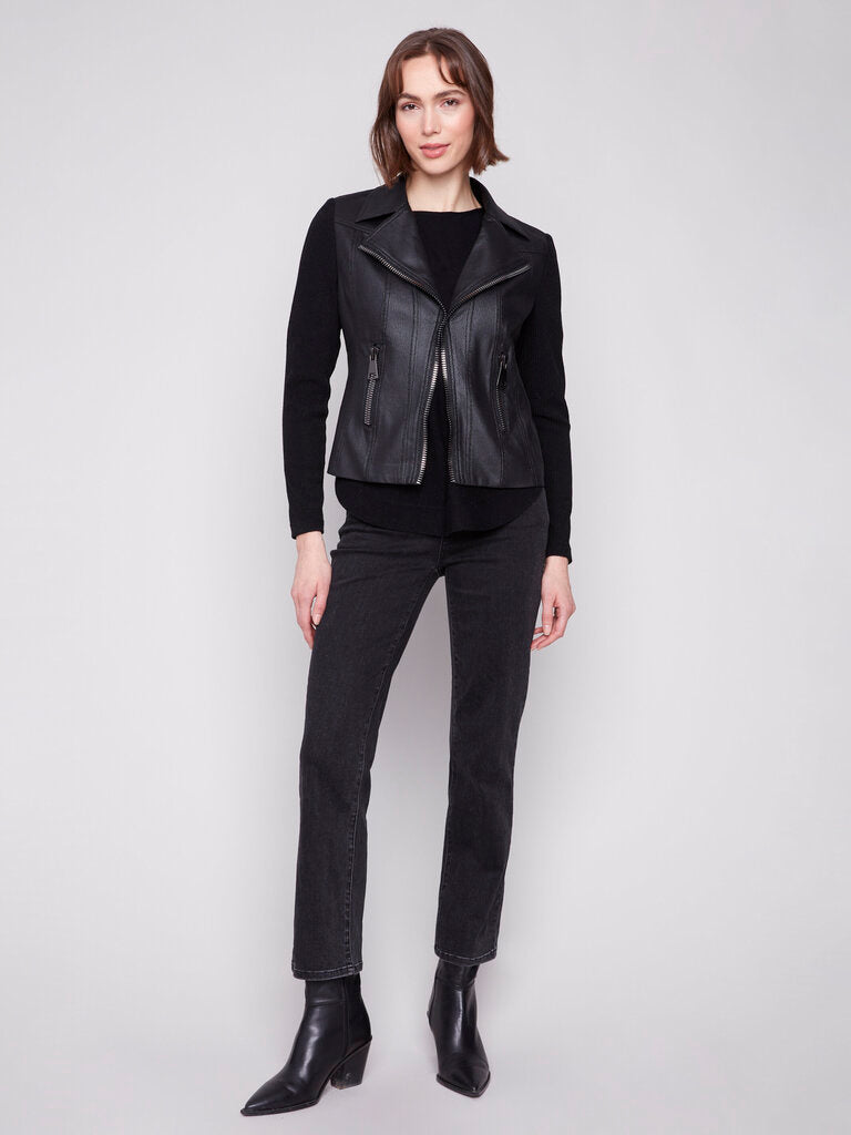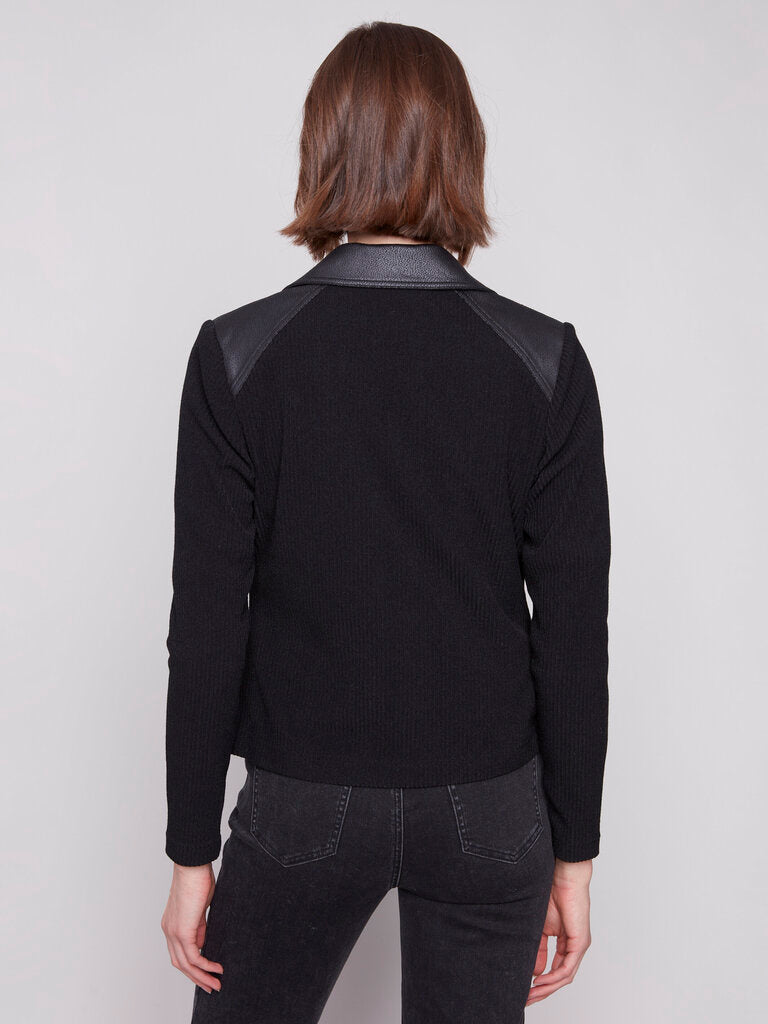 Charlie B Metallic Faux Leather & Rib Knit Jacket