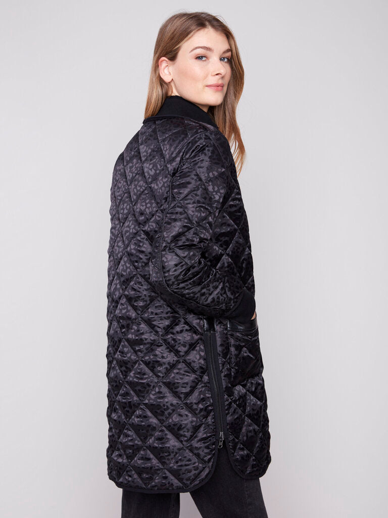 Charlie B Reversible Quilted Jacket - Black/Animal Print