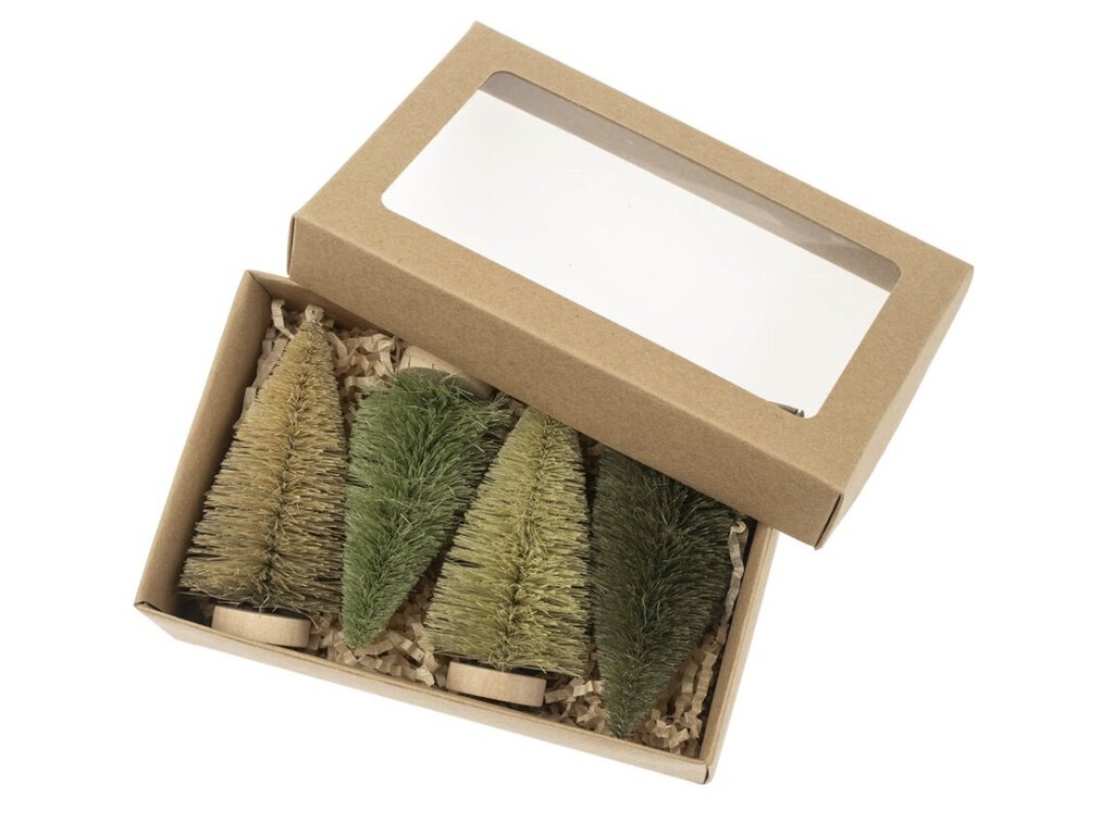 We pay homage to the classic tree motif and re-invent it with the Bottle Brush Trees. Crafted from biodegradable and sustainable agave plant fiber, this set of four trees forms a charming festive forest scene. Ideal for creating small holiday vignettes on the mantel, side table, or as part of a centerpiece for your holiday tablescape.