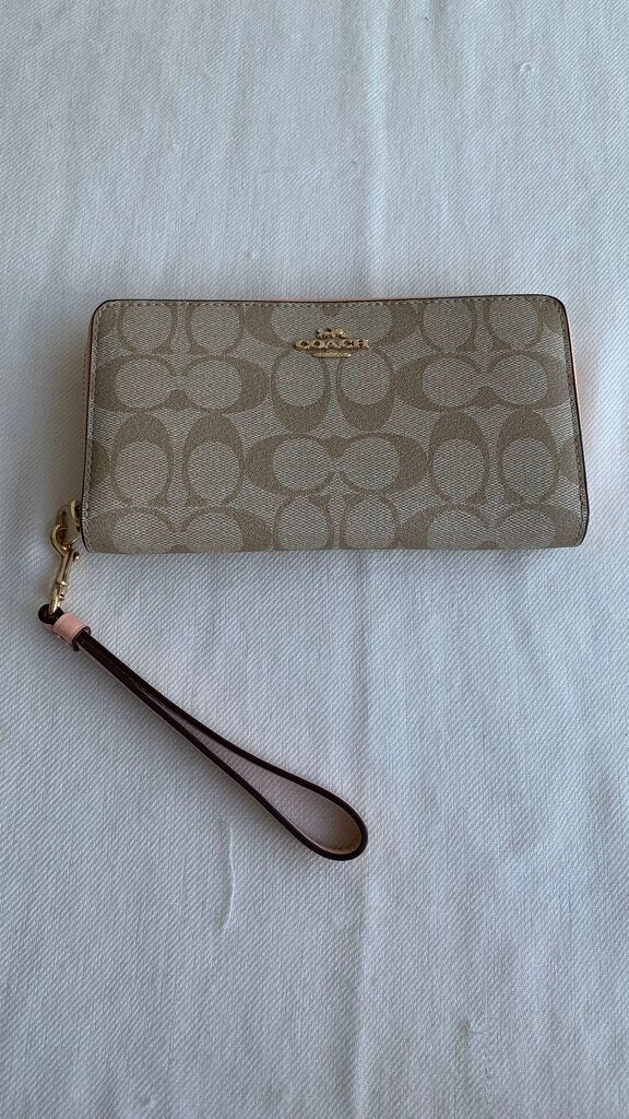 Pre-Owned Coach Light Khaki/Faded Blush Signature Long Zip Around Wallet (NWT)