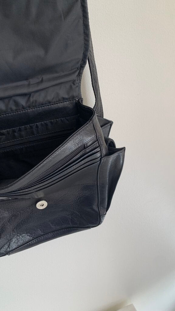 Pre-Owned Latico Black Leather Front Flap Side Bag