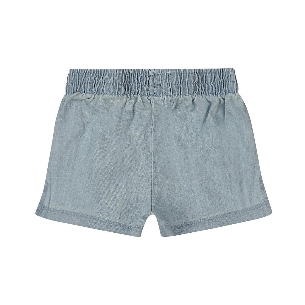 These sweet Dirkje shorts are a perfect choice for summer days. Made from 100% cotton, the girls' shorts offer an airy and breathable fabric with a stylish jeans look in blue. The thin material and slightly loose fit ensure a comfortable fit, ideal for active little ones. The elasticated hem makes donning easy and ensures extra comfort