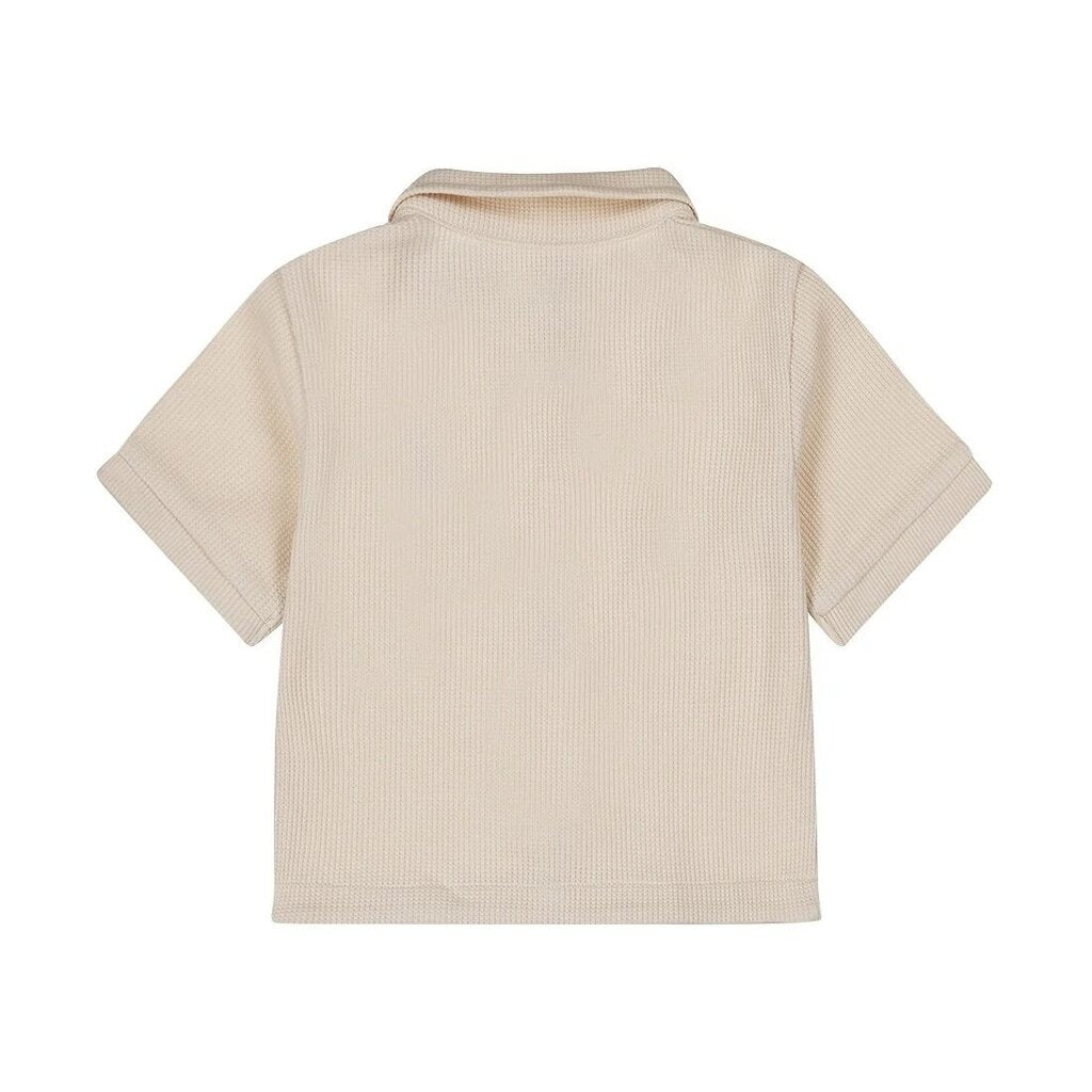 Give your little one a stylish look with the Dirkje shirt in sand colour. This handsome top for boys has short sleeves, a delicate texture in the fabric and a cute chest pocket with a collar. The button fastening provides a neat finish and makes it easy to put on and take off. Perfect for both casual days and special occasions, this shirt offers a nice mix of comfort and style.