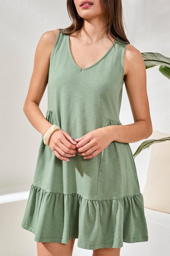 This sleeveless v-neck dress features a soft slub knit construction and a flowy, modern shape. With its 36" length and airy feel, it’s perfect for sunny days, special events, or every moment you want to move in effortless comfort.
