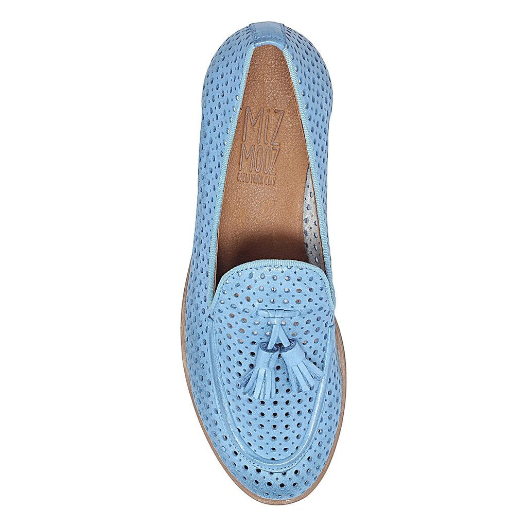 The Miz Mooz Iris is your warm-weather loafer with a breezy twist. It is designed with all the characteristics of a classic loafer but softened with the perforated leather upper and unique tassel detailing. Wear the Iris loafer with slacks and trousers for work or with flowy dresses and skirts for weekend play.