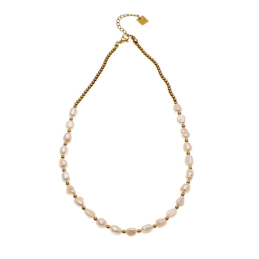 Style: ELISA 52417 Fresh Water Pearls & Gold Beaded Chain Necklace.