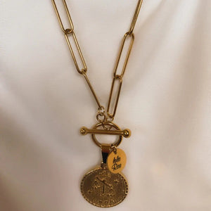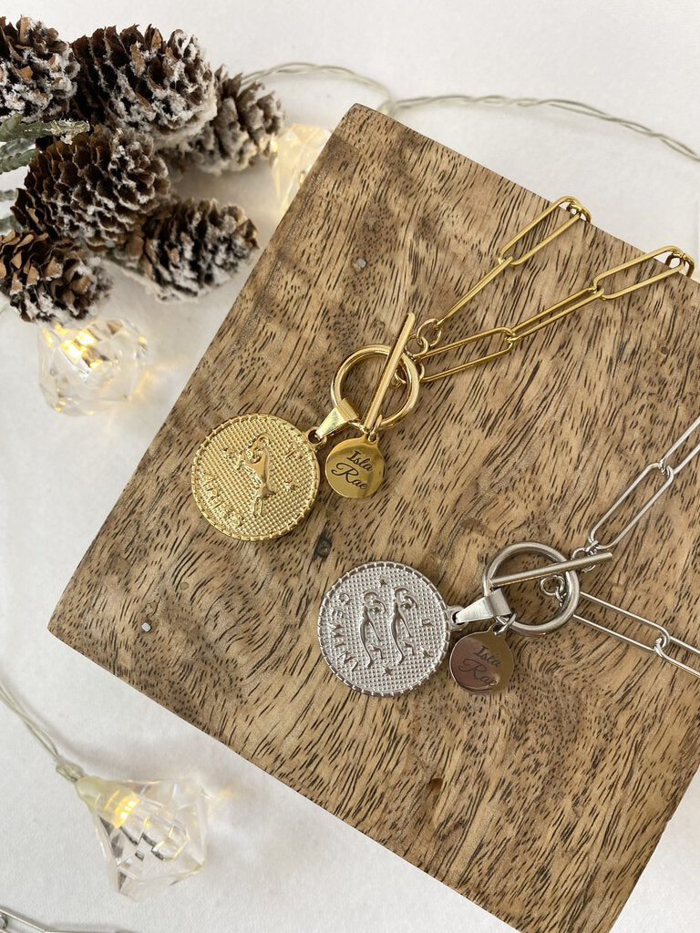 Our Large zodiac necklaces are bulky and unique! These high quality zodiac pendants are strung on paperclip chain and beautifully finished with a large toggle.