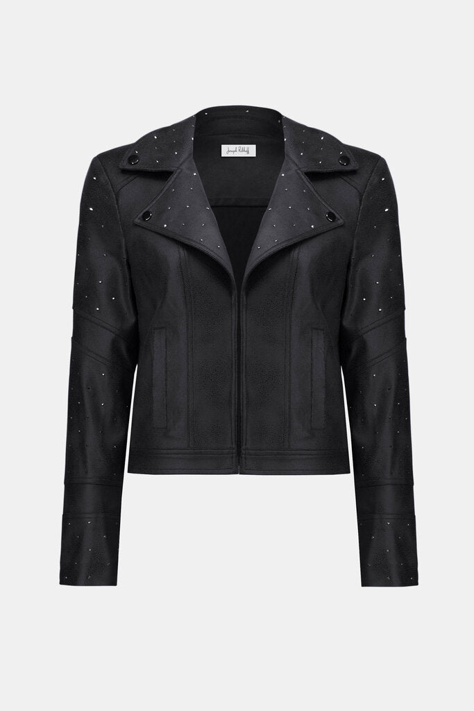Joseph Ribkoff 254904 Foiled Faux Suede Moto Jacket w/ Rhinestones