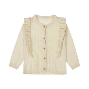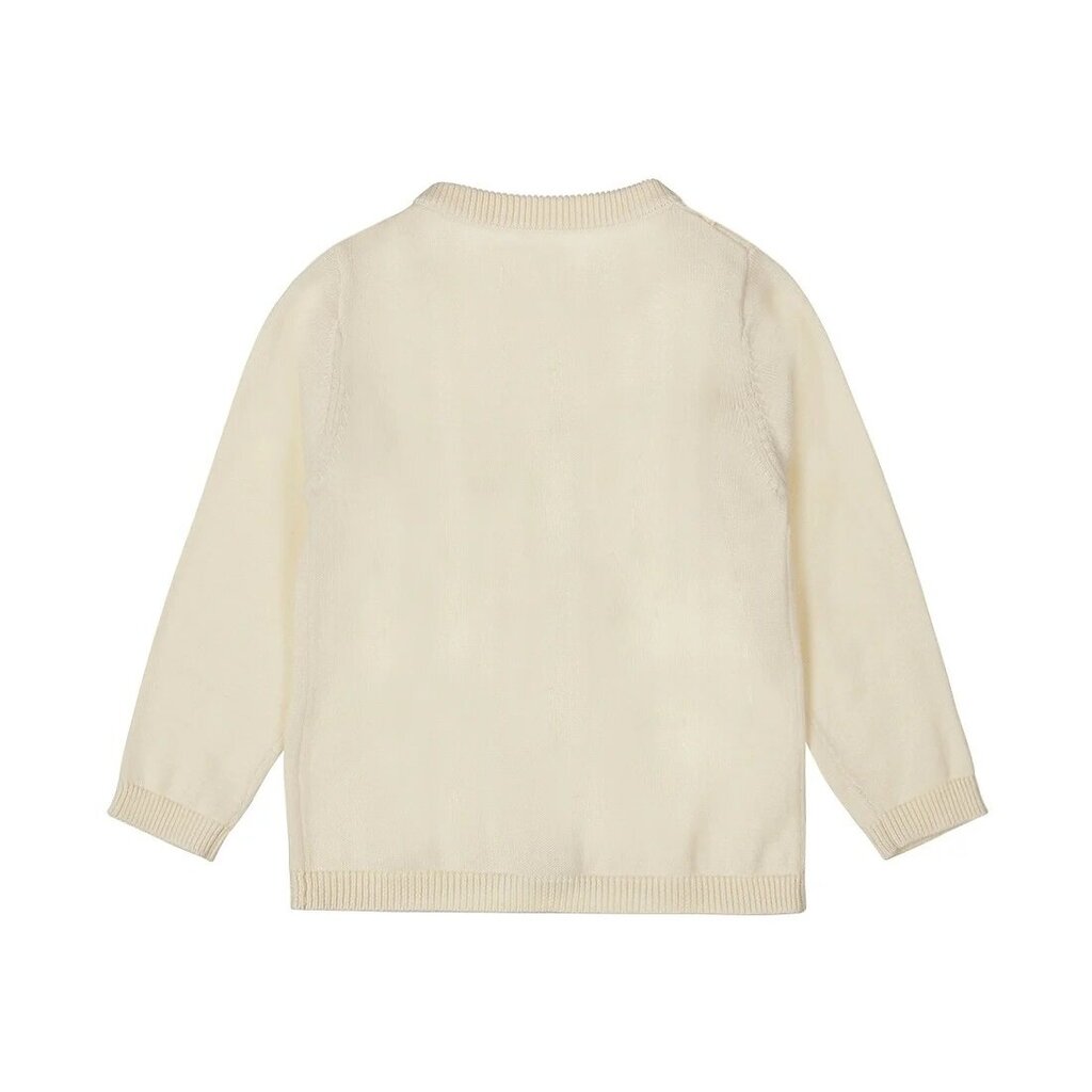 A cuddly soft Dirkje cardigan for your mini-me! This gorgeous off white cardigan is a must-have for your little fashionista's wardrobe. The soft, knitted material and pretty details make it a real favourite. The soft ecru cardigan, made of 100% cotton, is not only super cute, but also wonderfully warm. Perfect for the colder spring days or chilly summer evenings.