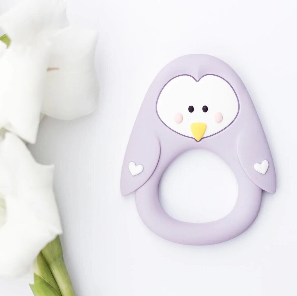 These adorable PENGUINS were drawn and designed exclusively by Little Cheeks! Their hollow design makes them easy for little hands to grab, and their smooth and textured surfaces provide added relief for your baby's gums. Seeing as they are pure silicone, they are also very easy to clean. Simply wash with mild soap and water, or throw them on the top shelf of the dishwasher. You can also put them in the freezer for extra relief when those painful teeth start poking through.