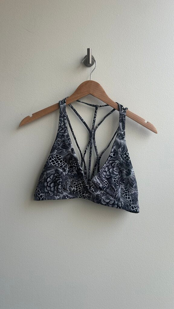 Pre-Owned Lululemon Black Grey Floral Print Strappy Back Sports Bra- Size 12