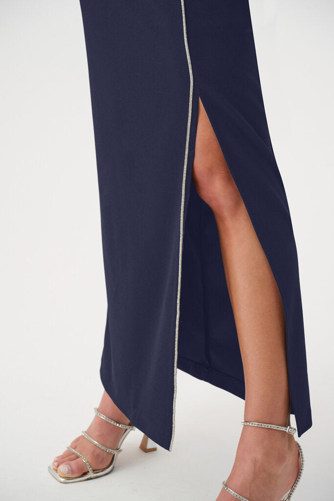 Joseph Ribkoff 261713 Scuba Crepe Sheath Gown with Rhinestone Piping - Midnight Blue