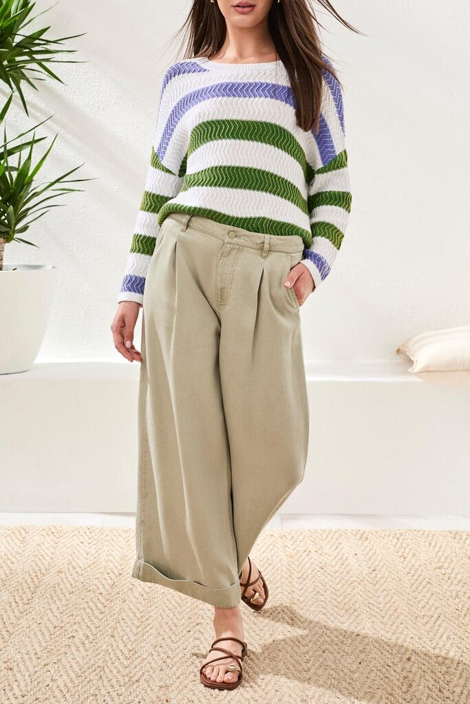 We love these trousers for their fun and flowy fit! Featuring a nice lightweight tencel fabric, pleats at front and cuffed hem.