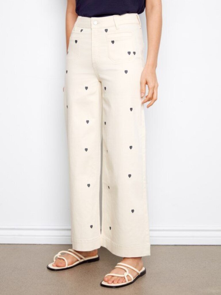 Charlie B Heart Embroidered Patch Pocket Twill Pants