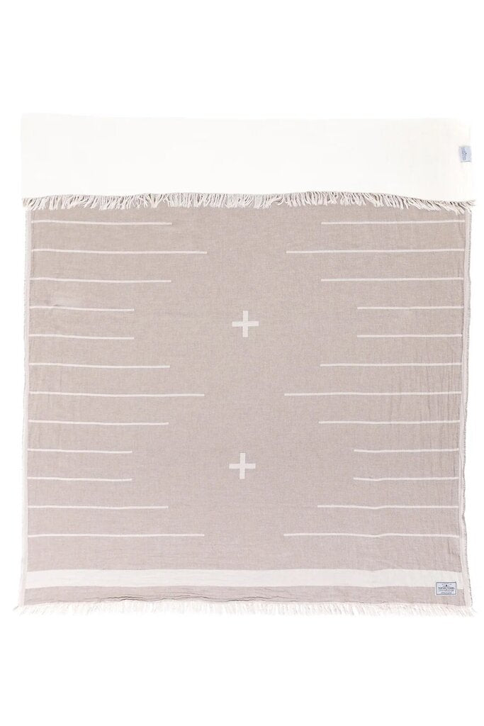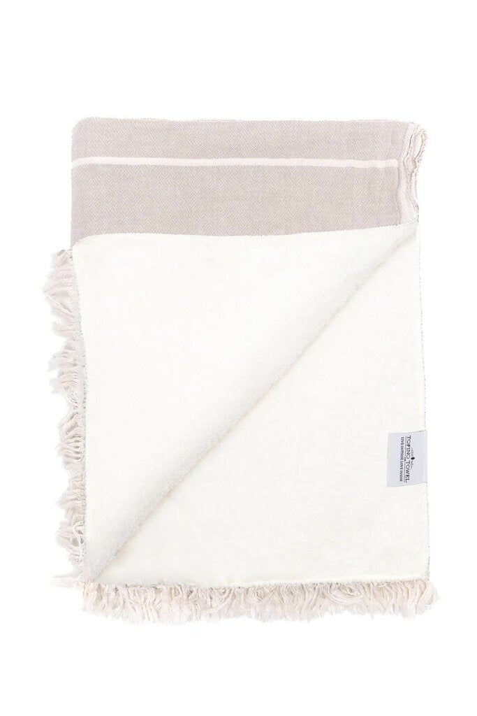 The Alps Throw is a custom designed throw made from Tofino Towel's signature Turkish cotton, featuring an eyelash fringe, and cozy fleece lining. This throw offers a beautiful minimal design and is the perfect cozy addition to any space.