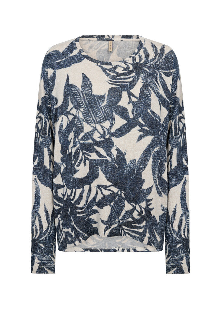 Soyaconcept 'Biara' Leaf Pattern Long Sleeve - Navy Melange