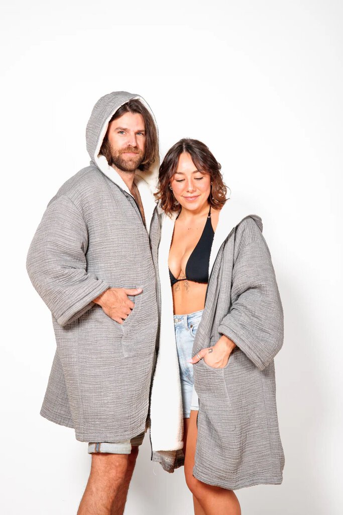 Tofino Towel 'Polar' Unisex Fleece-Lined Muslin Zip Poncho