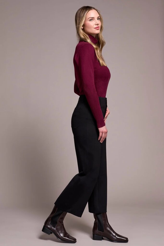 Move through the day with ease in these stylish and easygoing capri pants, designed with a flattering high-rise fit and relaxed wide legs. A classic fly and marbled button at the waistband add timeless appeal, while front and back pockets offer functional charm. Crafted from stretch ponte fabric, they deliver all-day comfort with a polished finish.