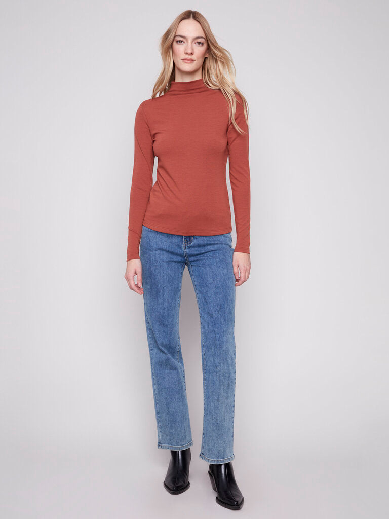 Charlie B Long Sleeve Mock Neck Top - Sepia