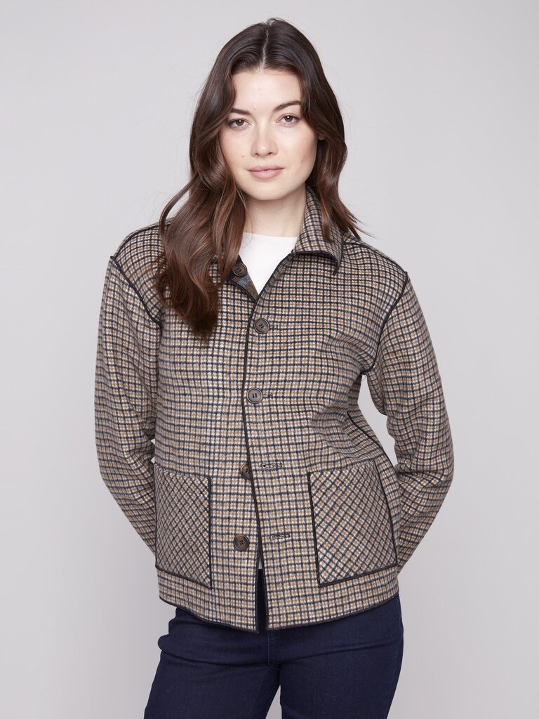Charlie B Reversible Plaid Coat - Cocoa