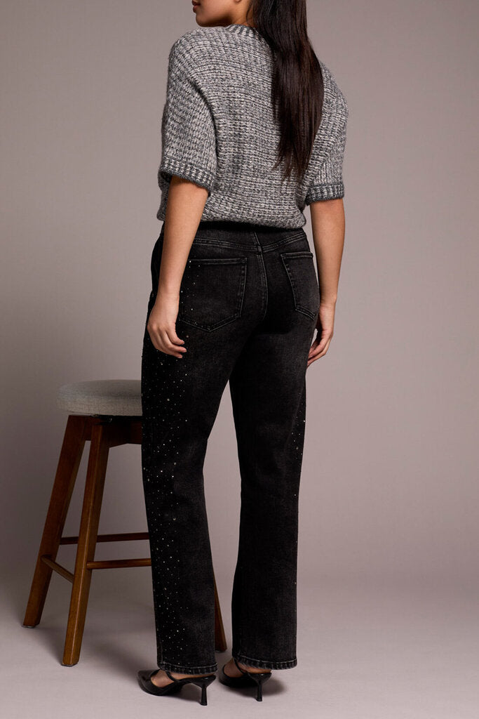 We're not ones to shy away from a little bling! These super cute jeans from Tribal feature a straight leg, dark charcoal black wash and rhinestones down the sides.