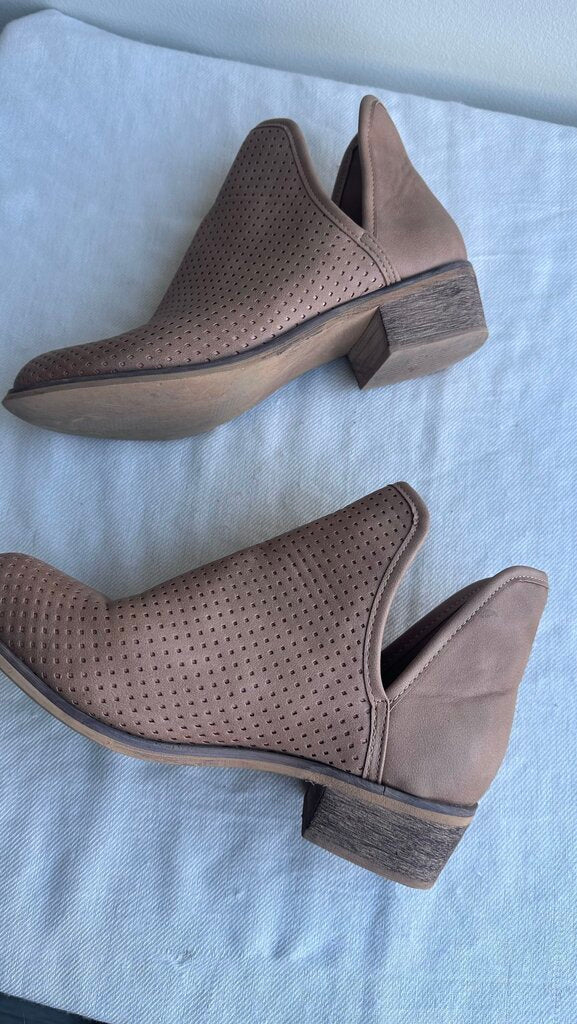 Pre-Owned Seven7 Cognac Perforated V-Cut Booties - Size 8