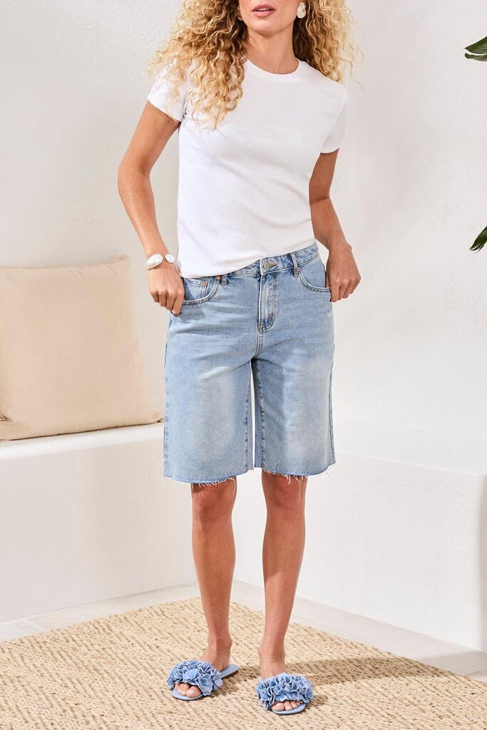 Meet your warm-weather staple: Brooke Hugging Walking Short features a hugging fit and wide leg opening in crisp 100% cotton non-stretch denim. A flattering silhouette that transitions from everyday errands to weekend escapes with ease.