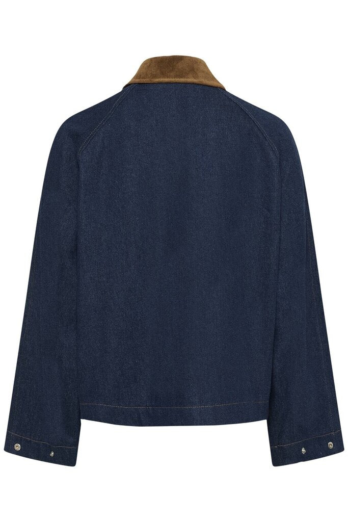 The corduroy collar adds a touch of western charm to this stylish dark wash denim jacket from Soaked in Luxury. Featuring a zip front and drawstring waist.