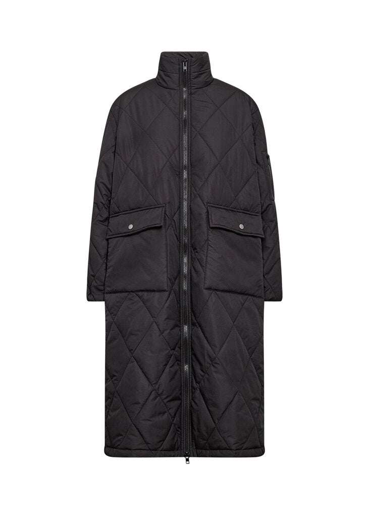 Soyaconcept 'Fenya' Diamond Quilt Long Coat - Black