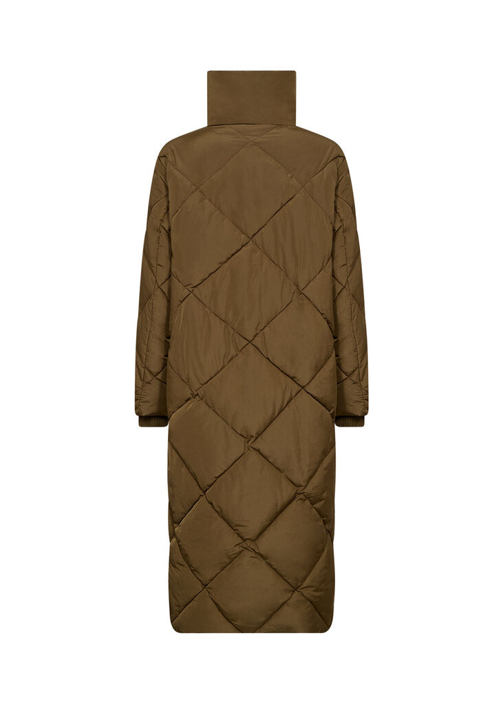 Soyaconcept 'Nina' Quilted Long Puffer Coat - Dark Olive