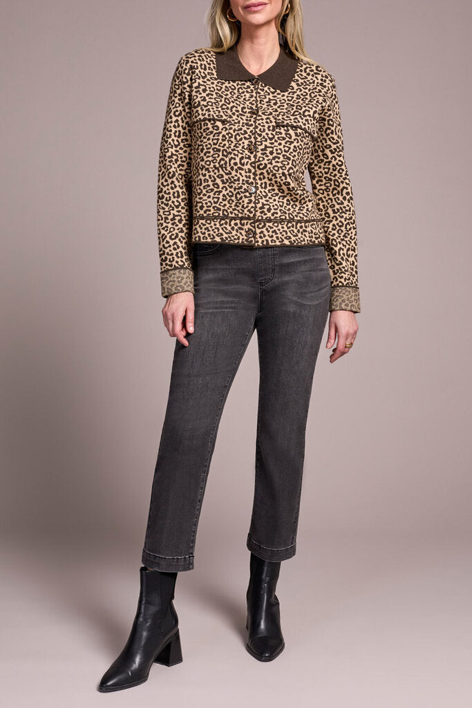 Tribal Striped Double Knit Collared Cardigan - Leopard