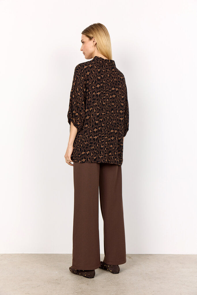 SC-SAFIRA 2 is a shirt made from 100% LENZING™ ECOVERO™ Viscose. This shirt comes with a classic collar, button-front detail, and an all-over animal print in a relaxed fit. Pair it with tailored trousers or denim for various looks.