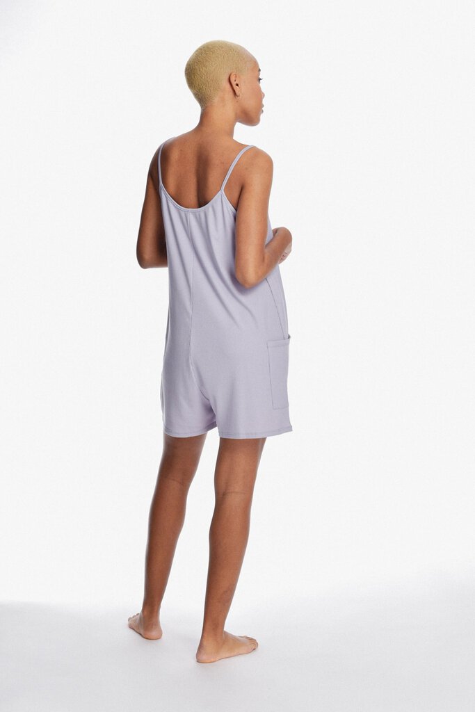 This romper has a ribbed knit construction, featured in a relaxed silhouette with a scoop neck and tank straps. It's designed and crafted to feel freeing and ultra-functional.