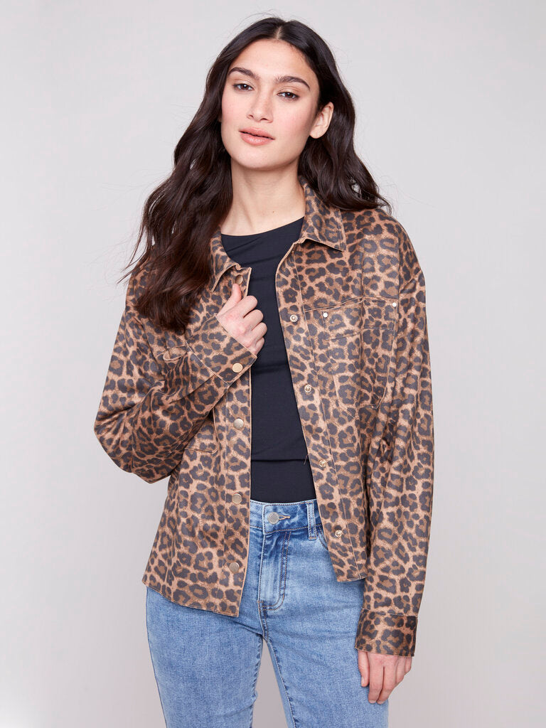 Charlie B Animal Print Scuba Short Jacket - Leopard