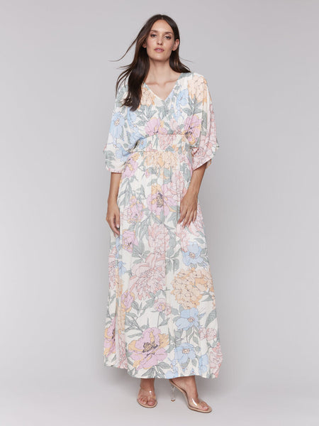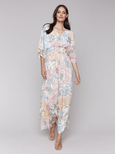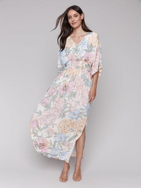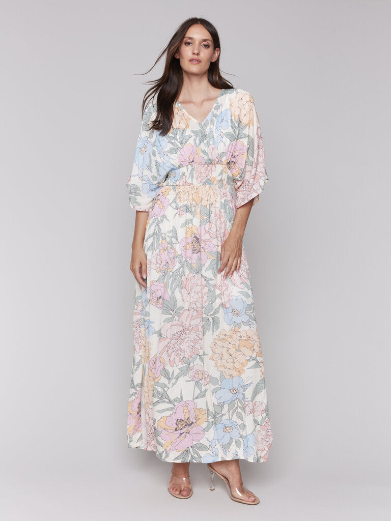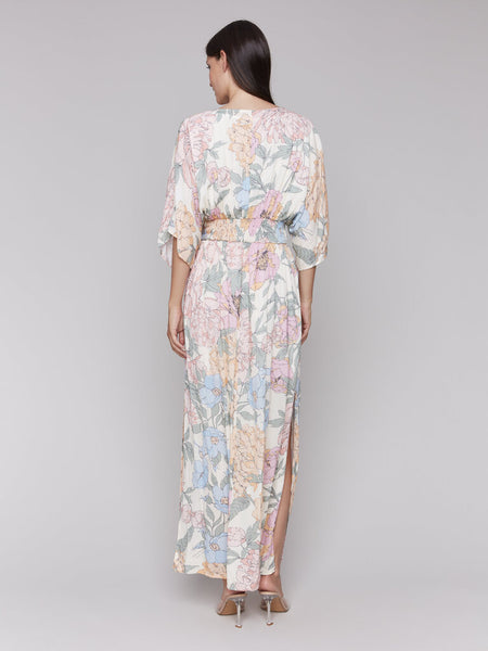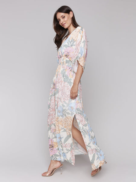 Printed Dolman Short Sleeves Maxi Dress With Side Slits