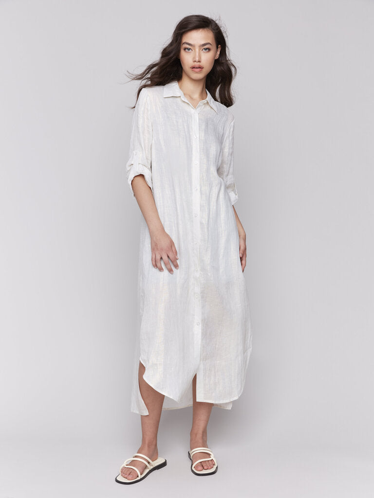 Foil Linen Tunic Dress with roll up sleeves. Featuring a gorgeous subtle metallic sheen.
