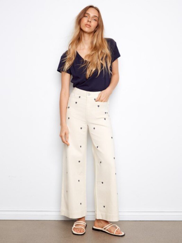 Charlie B Heart Embroidered Patch Pocket Twill Pants