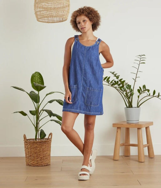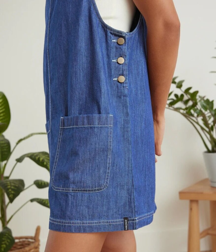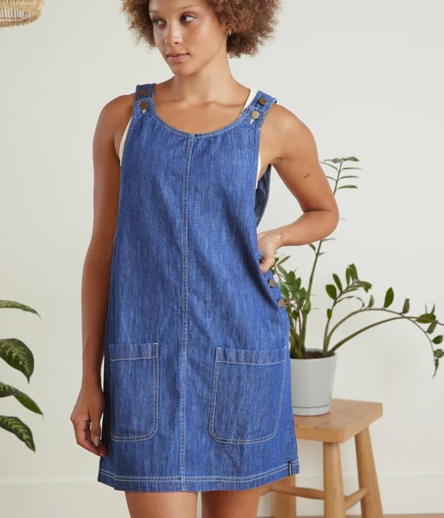 This lightweight denim dress is an instant classic. With patch pockets and adjustable straps, this will be a GREAT add to your sustainable fashion lineup for Spring.